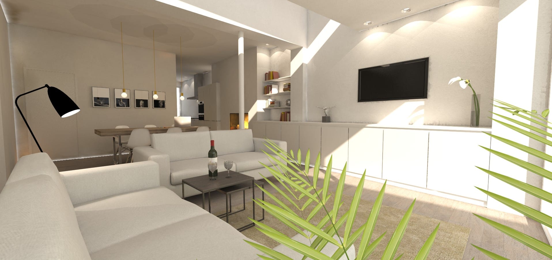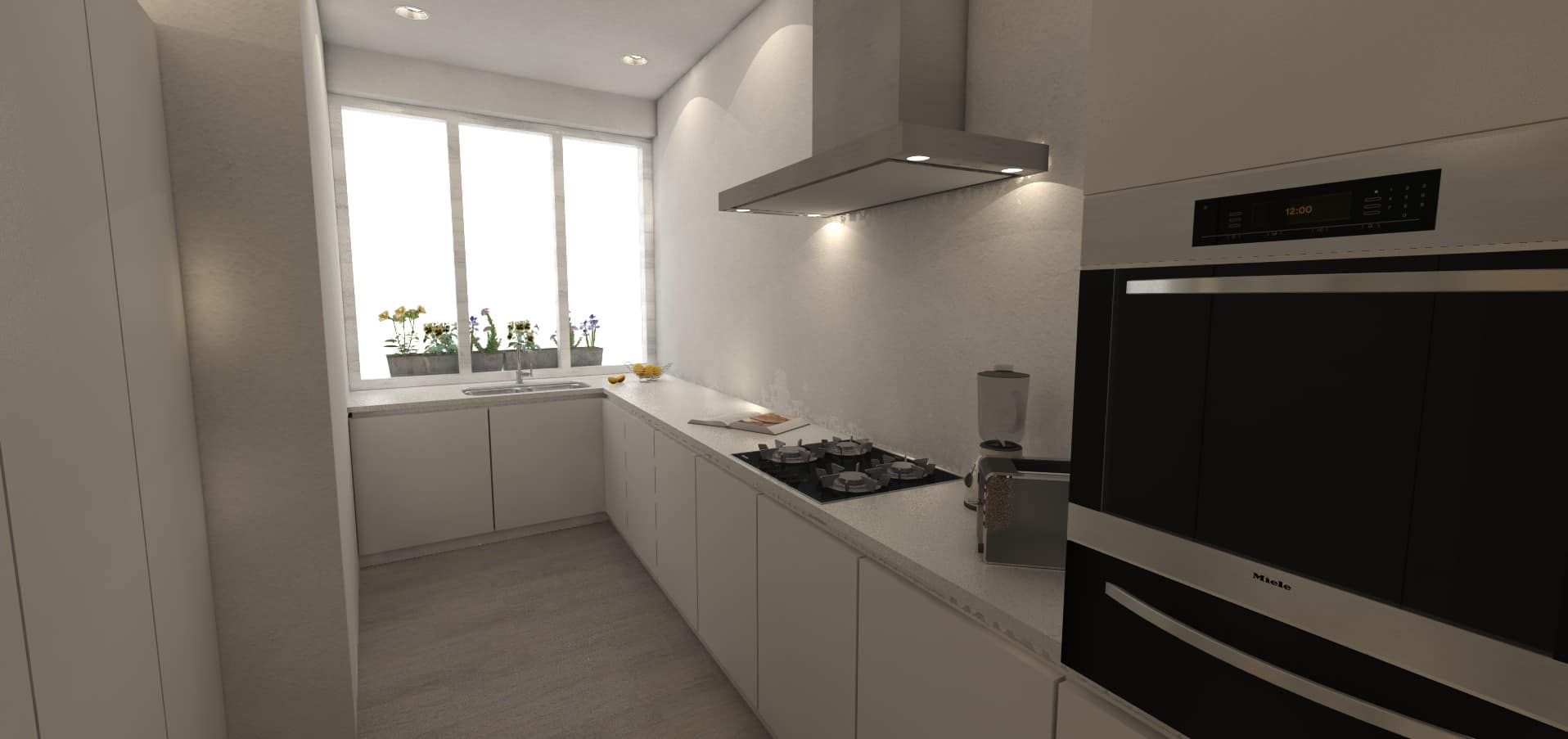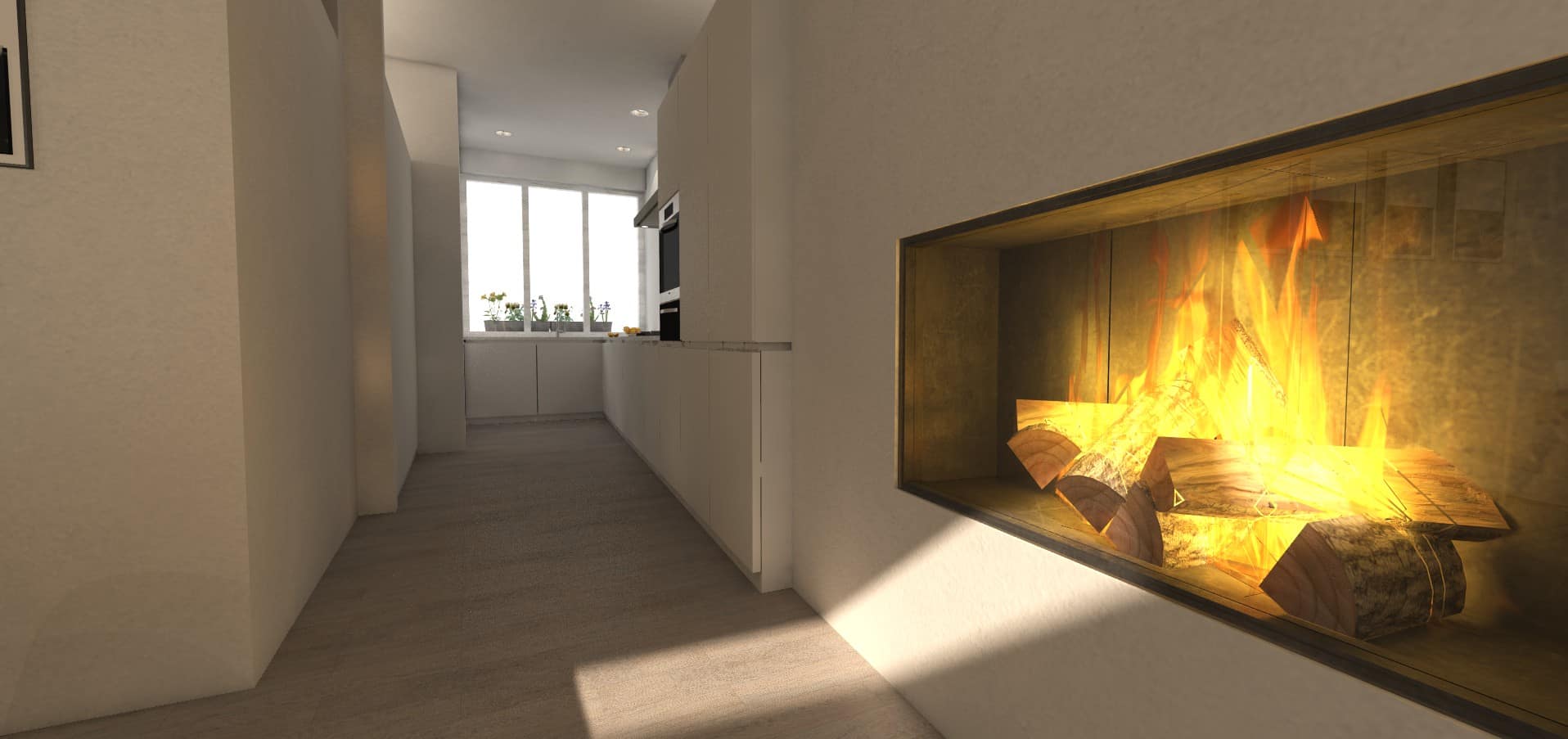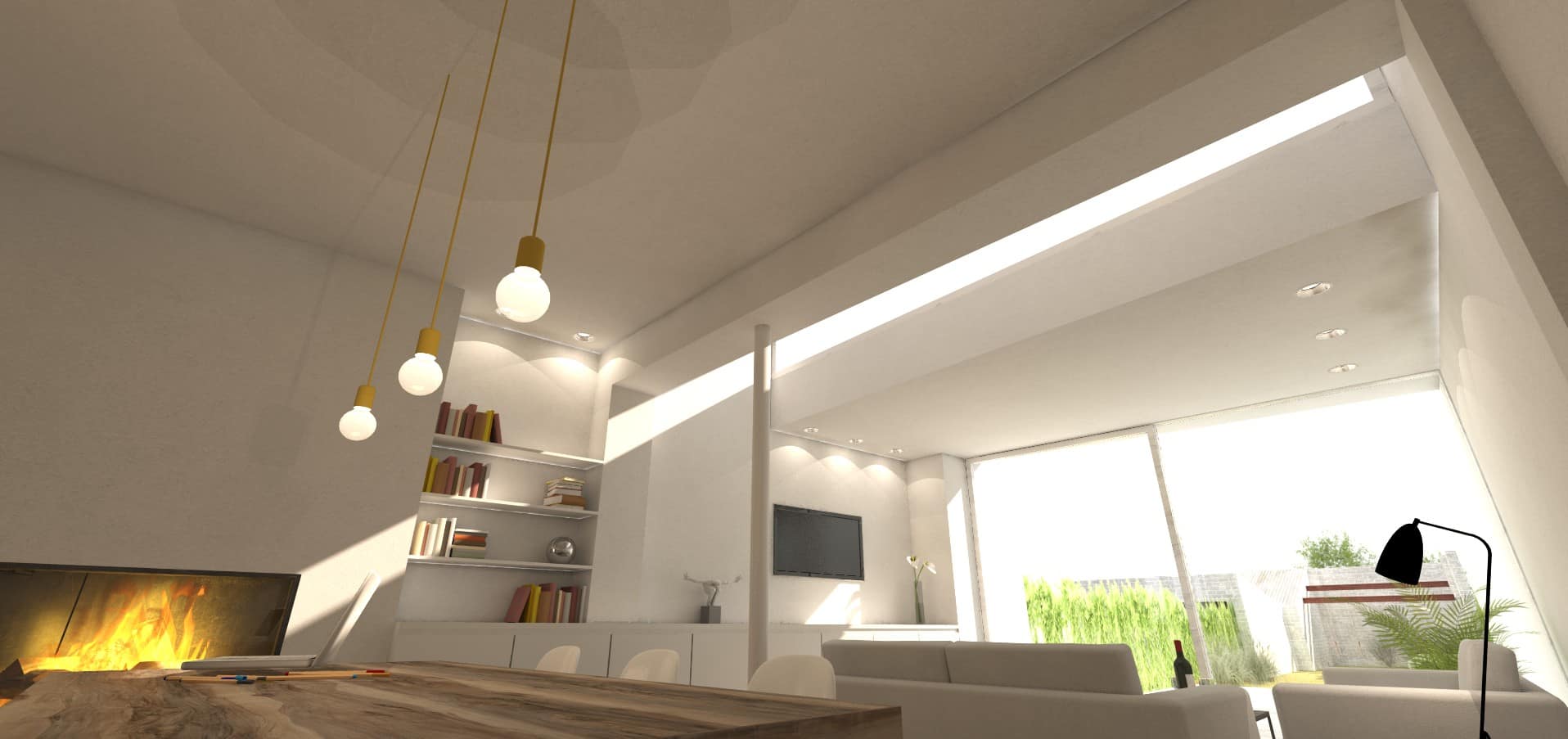 Boven de keuken wordt een lichtstraat voorzien. Op die manier valt het nodige licht binnen op het werkblad, maar ook verder, tot diep in de zithoek.